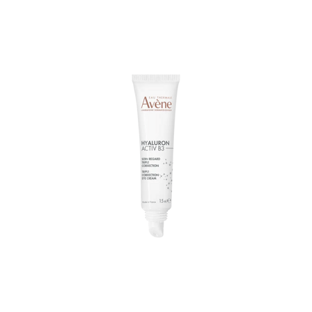 Avène Hyaluron Activ B3 es unTratamiento de contorno de ojos de triple corrección para adultos y todo tipo de piel, incluso ojos sensibles. Combina niacinamida (6%) y ácido hialurónico (alto y bajo peso molecular) junto con sulfato de dextrano para actuar sobre la causa del envejecimiento y ayudar a que el contorno se vea más firme, con arrugas, bolsas y ojeras atenuadas. Fórmula sin perfume, también apta para el contorno de labios y como base de maquillaje.
