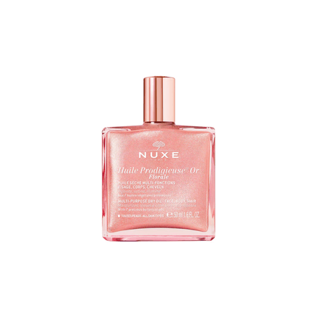 Nuxe Huile Prodigieuse Or Florale 50 ml combina el cóctel icónico de 7 aceites 100% vegetales en una versión “or” con reflejos de nácares de origen natural para realzar la piel con un efecto glow oro rosado. En un solo gesto, aporta hidratación y un acabado satinado en rostro, cuerpo y cabello, dejando la piel suave y sedosa sin sensación grasa. Su fragancia floral y alegre la convierte en un básico para quienes buscan un aceite multiusos de farmacia/parafarmacia con acabado luminoso, ideal para looks de día o eventos.